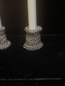 Perfect for medieval enthusiasts, fantasy fans, or anyone seeking a bold and unusual accent piece, these chainmaille candle holders are both functional and artistic.